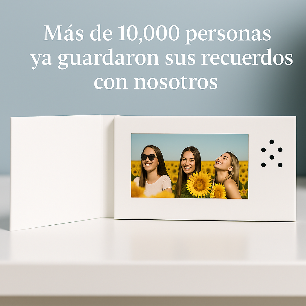 Con un diseño moderno y reutilizable, es ideal para aniversarios, cumpleaños o regalos especiales, combinando imagen, sonido y emoción en un formato elegante y portátil.